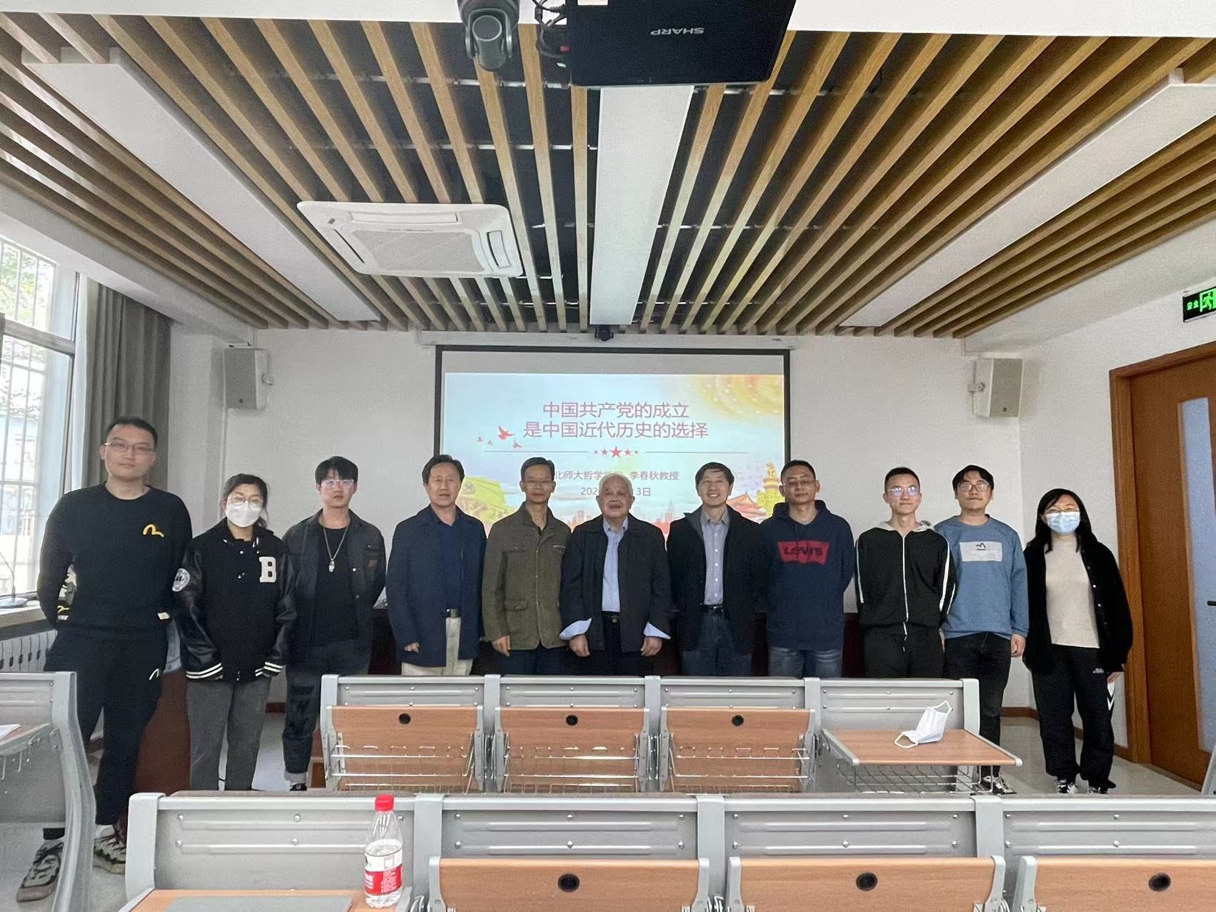在全党开展党史学习教育是以习近平同志为核心的党中央的重大决策。为贯彻落实中央和学校的部署,2022年4月13日下午,天文系党总支邀请北师大哲学学院李春秋教授,在北师大南院F座108会议室做了题为“中国共产党的成立是中国近代历史的选择”的党史学习讲座,天文系师生党员和部分群众共计39人参加了这次活动。