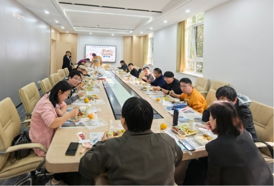 生日在6月到12月的19位老师陆续到场之后,生日会准时开始,大家开心的在背景墙前合影留念。物理学系为寿星们准备了专属的生日午餐和精美的生日蛋糕。在欢快的氛围中,大家共同品尝美食,畅谈趣事,分享生日的喜悦。一句暖暖的问候,一角甜甜的蛋糕,一份浓浓的关怀,都让老师们为这个集体而感动。