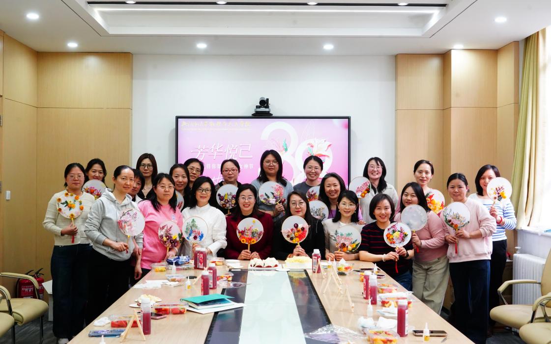 经过近两小时的精心创作,二十余把独一无二的永生花扇惊艳亮相。活动尾声,还特别安排合影留念环节,老师们手持花扇,于主题屏幕前留下倩影,镜头定格下的不仅是艺术品般的团扇,更是她们自信从容的笑容。正如这场活动的主题,这场与美邂逅的春日之约,是致礼女性力量的温柔注脚。活动结束后,大家纷纷表示,这场融合传统文化与现代美学的沉浸式体验,不仅让身心得以放松,更感受到学院对女性教职工的深切关怀。