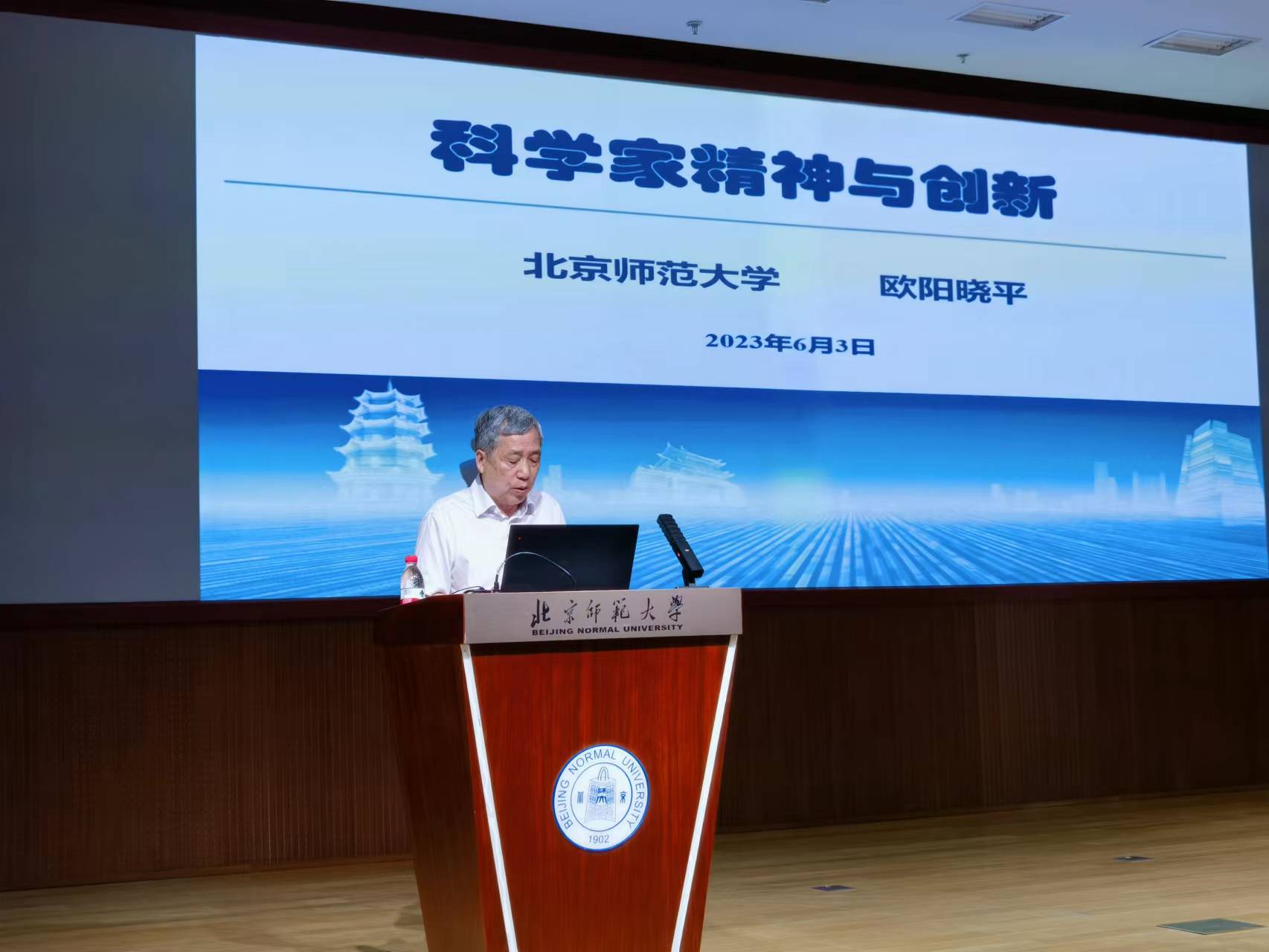 为庆祝第七个全国科技工作者日,大力弘扬科家精神,20236月3日,物理学系主办、《大学物理》期刊协办了以“点亮精神火炬 放飞科学梦想”为主题全国科技工作者日专场京师物理科普大讲坛暨小小科学家培育基地首场活动特别邀请中国工程院院士欧阳晓平做题为“科学家精神和创新”的主旨报告,加强青少年的思想政治引领让青年学生近距离感受科学家的学术素养家国情怀,锤炼创新精神的同时坚定科学信仰,以科普教育助力新时代人才强国战略