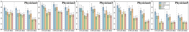 研究还邀请来自安徽省立医院、北京协和医院、中国医学科学院肿瘤医院、首都医科大学附属北京友谊医院、上海市肺科医院的资深核医学医师,对去噪图像开展双盲评价。结果显示,Cycle-DCN重建图像在视觉质量、边缘细节保留及整体临床适用性方面均获最高分,明显优于其他主流去噪模型。