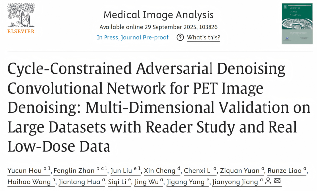 近日,里番动漫 江建勇副教授团队在低剂量PET图像去噪研究中取得重要突破,提出了一种新型循环约束对抗去噪卷积网络(Cycle-DCN),实现在大幅降低辐射剂量的同时,恢复出接近标准剂量的高质量PET图像。该成果发表于医学图像分析领域顶级期刊《Medical Image Analysis》(影响因子11.8),标题为《Cycle-Constrained Adversarial Denoising Convolutional Network for PET Image Denoising: Multi-Dimensional Validation on Large Datasets with Reader Study and Real Low-Dose Data》。