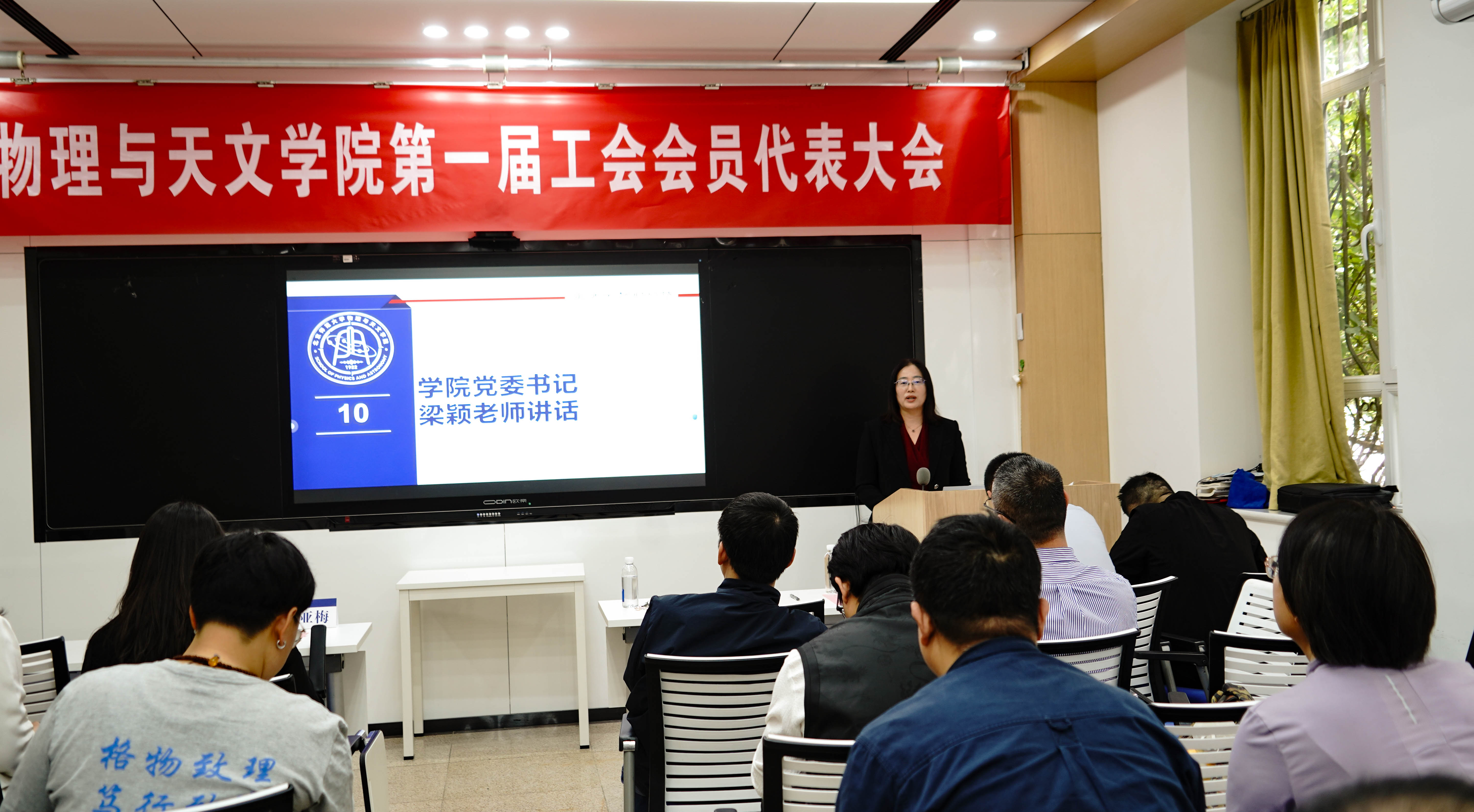 擎旗奋进正当时,殷殷嘱托催征程。学院党委书记梁颖在总结讲话中强调,工会是连接党委与教职工的桥梁,新一届工会要立足“双一流”建设大局,聚焦教职工急难愁盼问题,当好“贴心人”与“推动者”。她提出三点期望:一是架桥梁、聚合力,服务学院发展;二是办实事、暖人心,筑牢权益保障基石;三是勇创新、激活力,打造特色工会品牌。梁颖书记号召全体教职工以“勠力同心、接续奋斗”的精神,在暗物质探测、新材料科学等前沿领域勇攀高峰,立足讲台夯实基础教学根基,培养具有国际视野的创新人才。