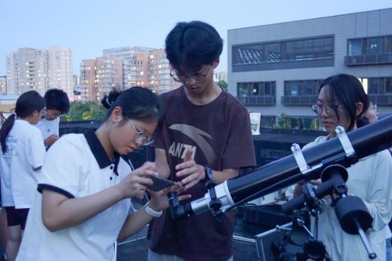 "物镜是苍穹之眼,目镜是解码之窗。" 暮色四合时,学子们探索的热情指向苍穹。在张文昭老师的指引下,课堂上,他们插上探索的翅膀,遨游在理论知识的海洋,观测台上,他们亲手拆装、校准望远镜,当镜头精准捕捉皎月繁星,当月球上的环形山在目镜中浮现金色的光弧,激动的欢呼声中,那份亲手触摸宇宙的悸动与成就感,早已化为心中永不褪色的科学浪漫诗篇。