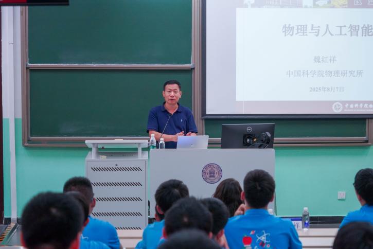 中国科学院物理研究所魏红祥研究员则架起物理与人工智能的跨界虹桥。他从“物理即万物之理”切入,以风趣故事阐明物理学是解构世界的核心法则,鼓励学子“以质疑为刃、以实践为舟”,用物理思维破解生活谜题。在剖析AI大模型原理时,他化繁为简揭示“神经网络如何思考”,更以《流浪地球》科技顾问的幕后经历,点燃“以科学幻想推动人类进步”的激情。当讲述用物理知识优化电影行星发动机设计的细节时,学子眼中迸发出对“科学赋能文明”的深切共鸣。