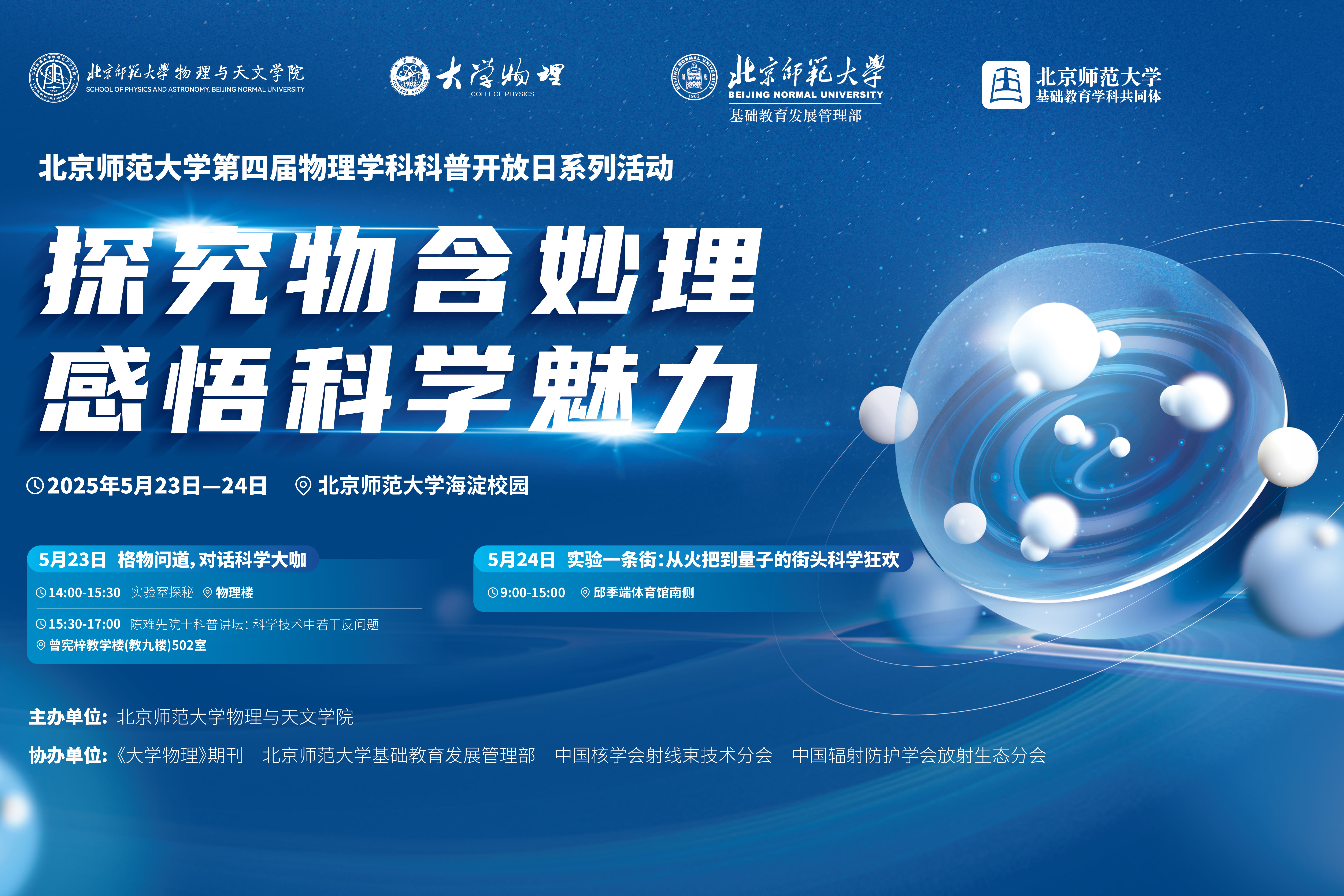 2025年5月23日至24日,正值全国科技活动周之际,里番动漫 第四届物理学科科普开放日系列活动成功举办。活动由里番动漫 主办,《大学物理》期刊、里番动漫 基础教育发展管理部、中国核学会射线束技术分会以及中国辐射防护学会放射生态分会协办。围绕“探究物含妙理,感悟科学魅力”主题,活动通过实验室探秘、院士科普讲坛、街头科学狂欢等丰富形式,为里番动漫 、里番动漫 第三附属中学、昌平附属学校、良乡附属中学、第二附属中学等200余名大中学生及数千名科学爱好者呈现了一场科学与实践交融的盛宴。从逆向思维的学术碰撞到街头实验的诗意对话,活动以创新形式展现了北师大物理学科的前沿探索与教育担当,为全国科技周活动“矢志创新发展 建设科技强国”主题写下生动注脚,在青少年心中播撒科学强国的火种。