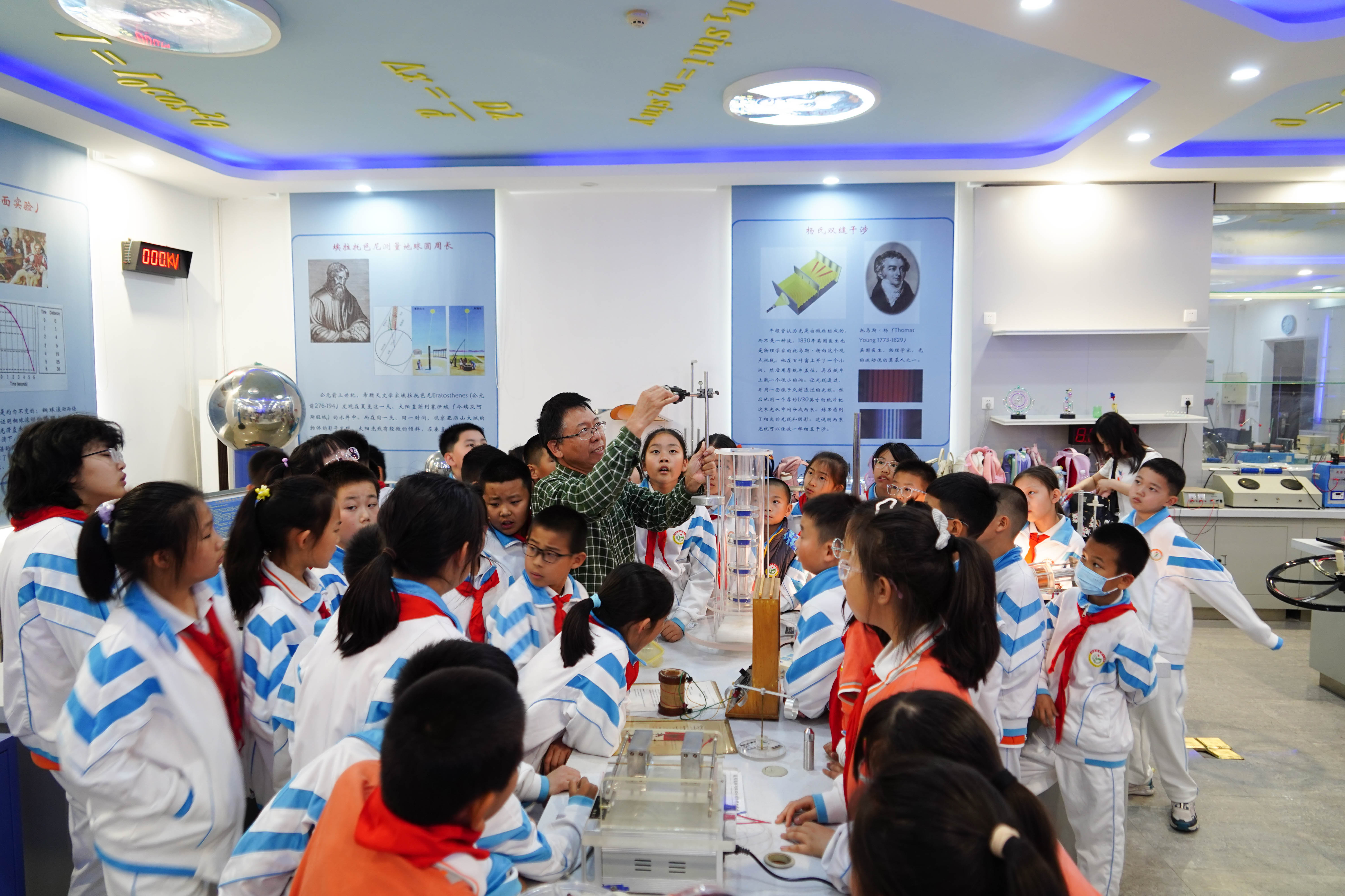 2025年4月27日,里番动漫 (以下简称“物天学院”)迎来了一场别开生面的跨学科主题研学活动。来自远洋芳草地小学和北京市密云第一小学的五百余名小学生走进中国物理学会科普教育基地,通过沉浸式科学实践,将学科知识与实践探索相融合,在少年学子心中播撒科学的种子。
