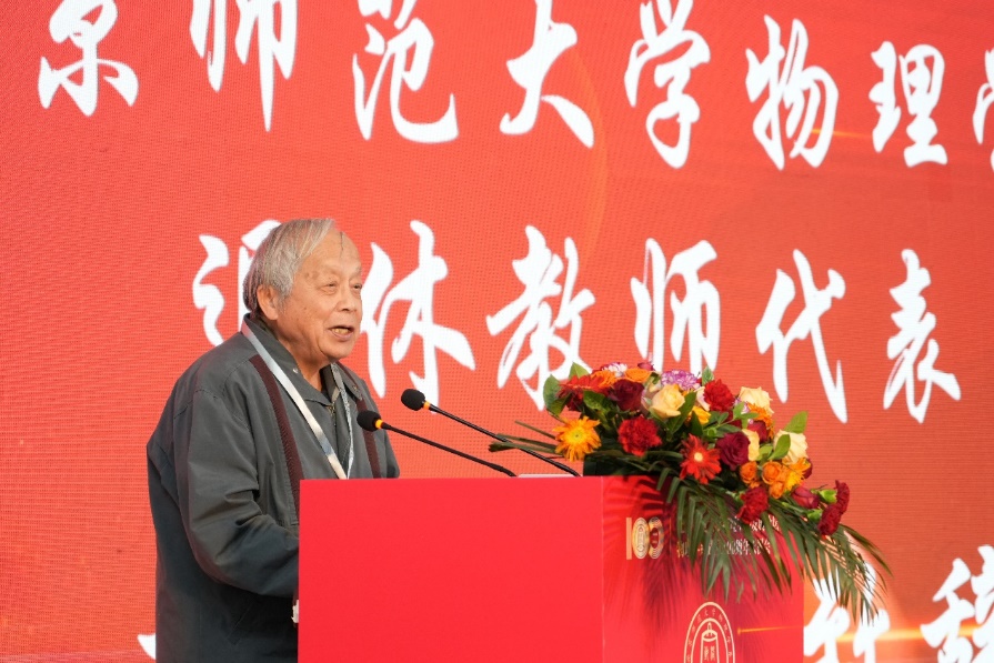 中国科学院理论物理所所长、宁波大学校长蔡荣根院士介绍了自己与北师大物理学系的深厚渊源,对物理学系建设一百周年表示热烈的祝贺。他表示,北师大物理学系与理论物理所建立了深厚的感情,为未来的合作和发展打下了良好的基础,希望两个单位建立更加密切的联系和合作,共同为物理学的人才培养、推进中国的物理学事业以及为国家的科技创新做出更大的贡献。